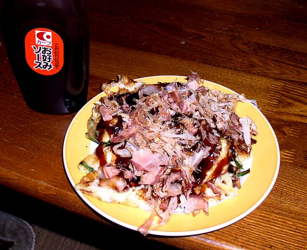 焼きあがったら、お好みソース(僕はカープソースが好み)をたっぷり塗り、