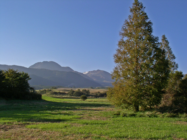 ヒント3 右の写真の遠景は三俣山、左の遠景は湧蓋山です。